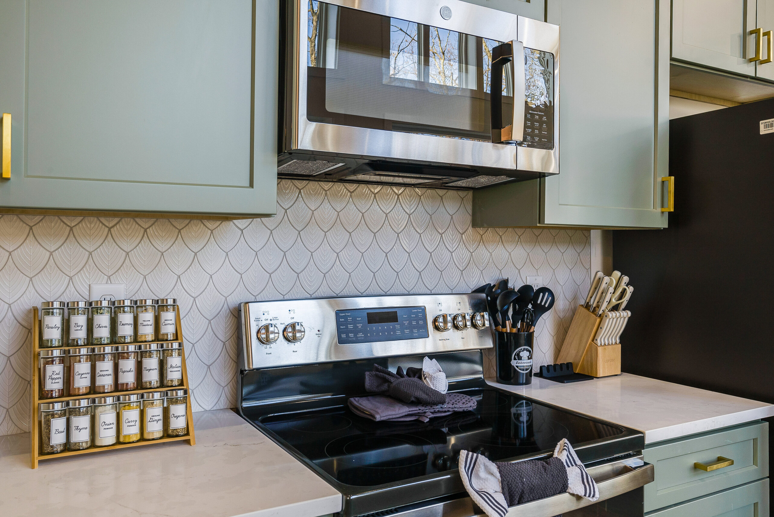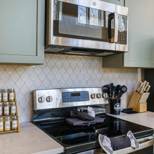 *Fully stocked kitchen with Quartz counters, tile backsplash, drip coffeemaker, pots/pans, spices, blender, toaster, crockpot, and all essential utensils