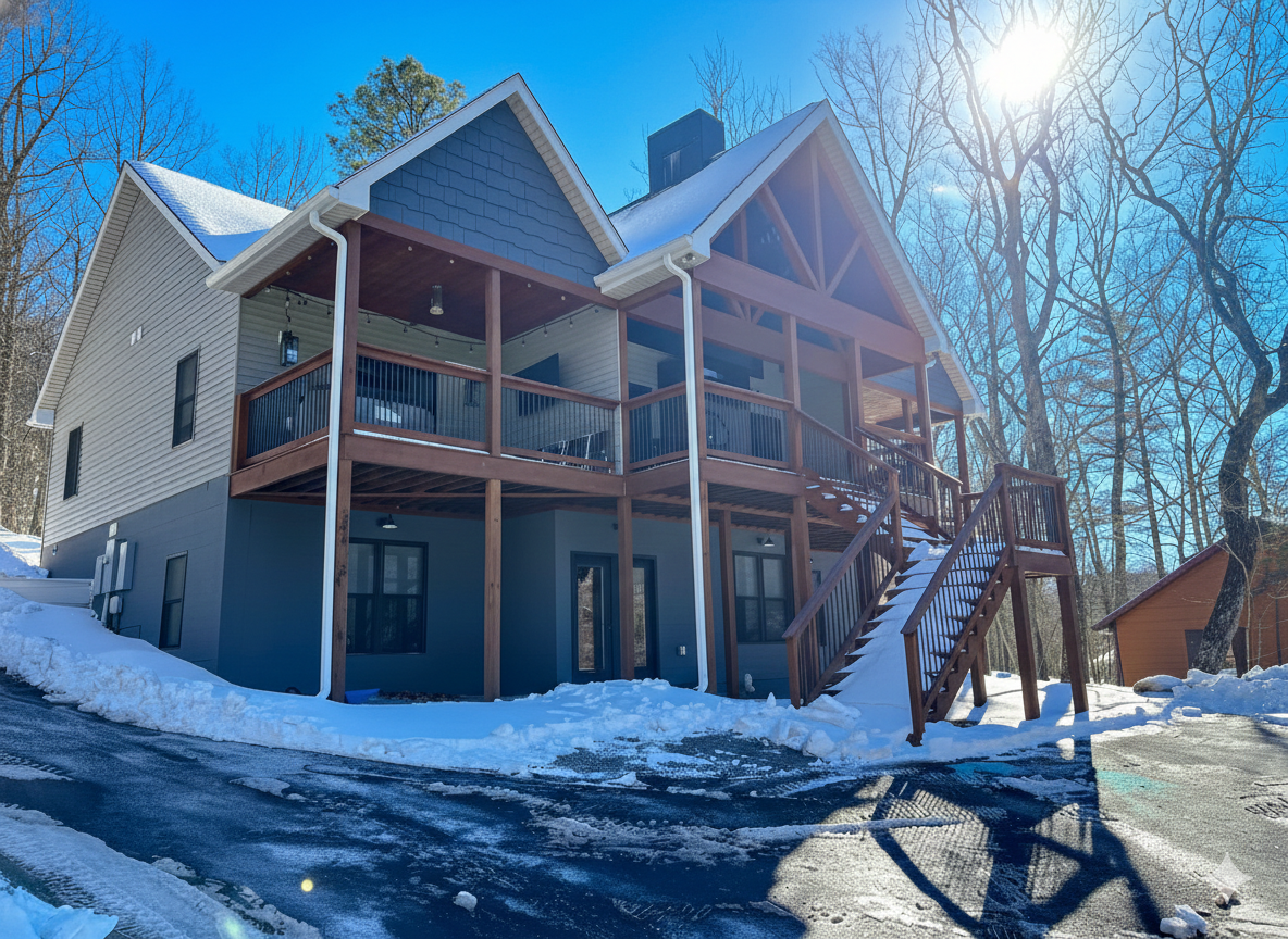 Massanutten’s NEWEST beautiful vacation home. Don’t miss an opportunity to stay at this exclusive Eagle’s Peak Lodge featuring stylish and luxurious finishes and INDOOR HEATED POOL!! BRAND NEW construction home features 6 bedrooms and 7 bathrooms, each bedroom features its own PRIVATE BATH. Wide open layout with spacious living and kitchen space, bonus rec space downstairs. The spacious living room features beautiful beam ceilings, vaulted ceilings, and double sided gas fireplace which adds to the luxurious cabin vibe. The kitchen features granite counters, SS appliances, tile backsplash. The house has luxury vinyl flooring throughout the entire home. The vaulted ceilings with floor to ceiling windows give you plenty of natural light and gorgeous mountain views. You can find us at Vacay Away for more questions.